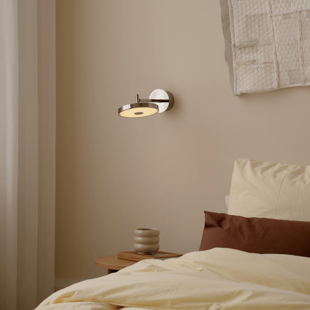 "The shade of the Asteria wall is adjustable, giving you the possibility of directing the light as needed, keeping your partner undisturbed while you read"