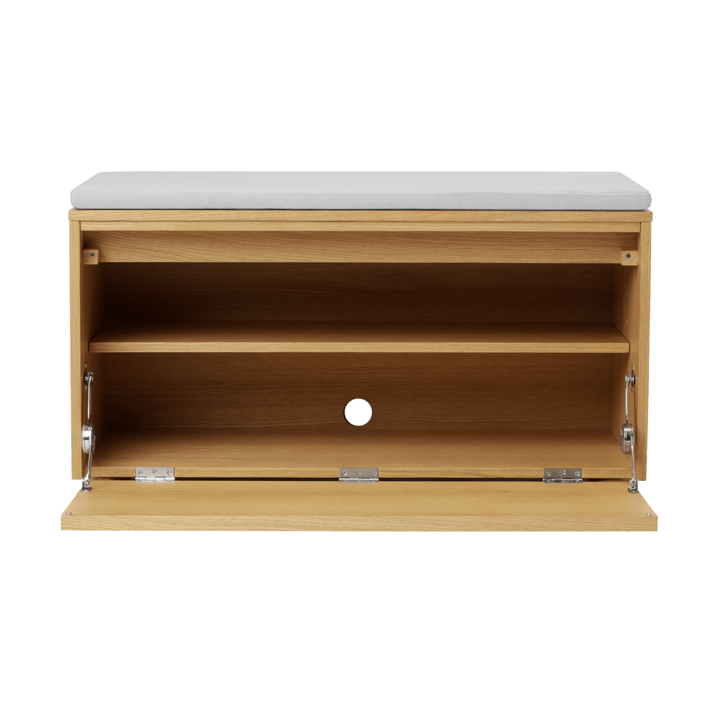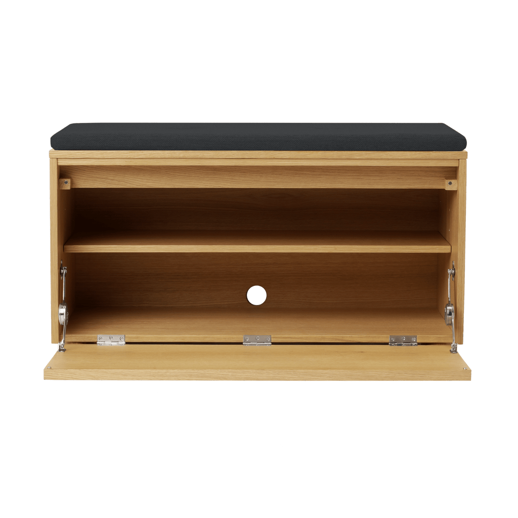 Hideaway combines timeless design with everyday functionality, offering storage and seating in one elegant piece. Crafted from oak and available with customisable fronts and cushions, it adapts easily to hallways, living rooms, or children’s rooms—whether as a shoe bench, reading nook, TV unit, or discreet cabinet.