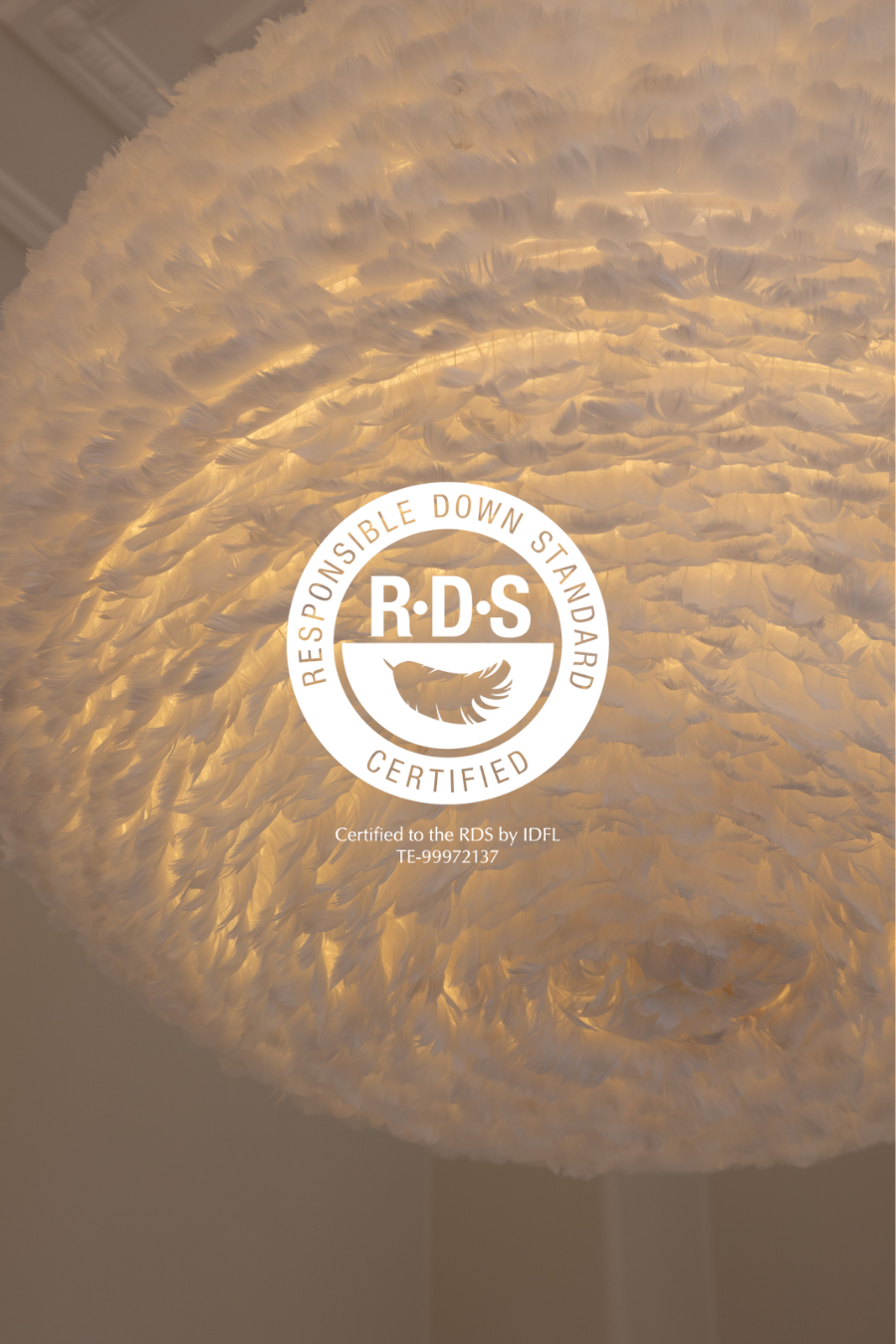 At UMAGE we ensure that all goose feathers used for our Eos feather lamp collection is 100% sustainably sourced from farmland to end-consumer. All feathers are licensed with an RDS certification, ensuring the well-being of animals in our production. RDS stands for Responsible Down Standard and is an acknowledged certification in the industry of down and feathers. To receive this certification our entire product supply chain - from farmland to end consumer - has been audited, approved, and certified by IDFL, ensuring that all animals are treated with respect for the Five Freedoms of Animal welfare. In the sourcing of the feathers used in our Eos feather lamps, we are repurposing a by-product from the food industry. Goose feathers that would otherwise be burned and wasted are instead sanitized and repurposed, thus diminishing the environmental impact. With products certified with the Responsible Down Standard you’re ensured that no live-plucking or force feeding has taken place.
